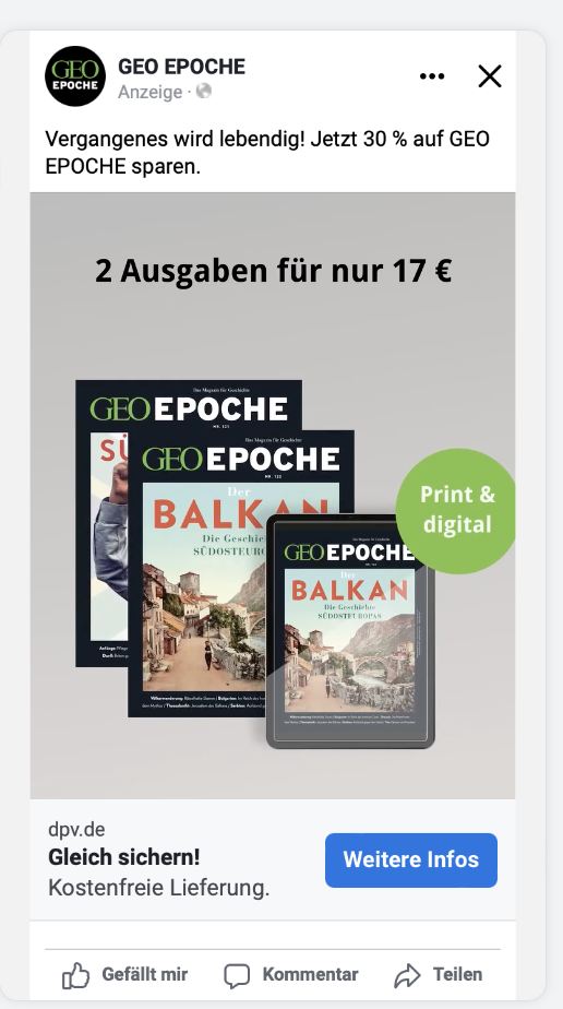 Jede Marke hat ihren eigenen Kern. Diesen versuche ich mit jeder Ad herauszukehren. Die Social Ads, die ich hier zeige sind nur einige von denen, die ich erstellt habe. Schreiben Sie mir gerne und ich zeig Ihnen noch mehr!